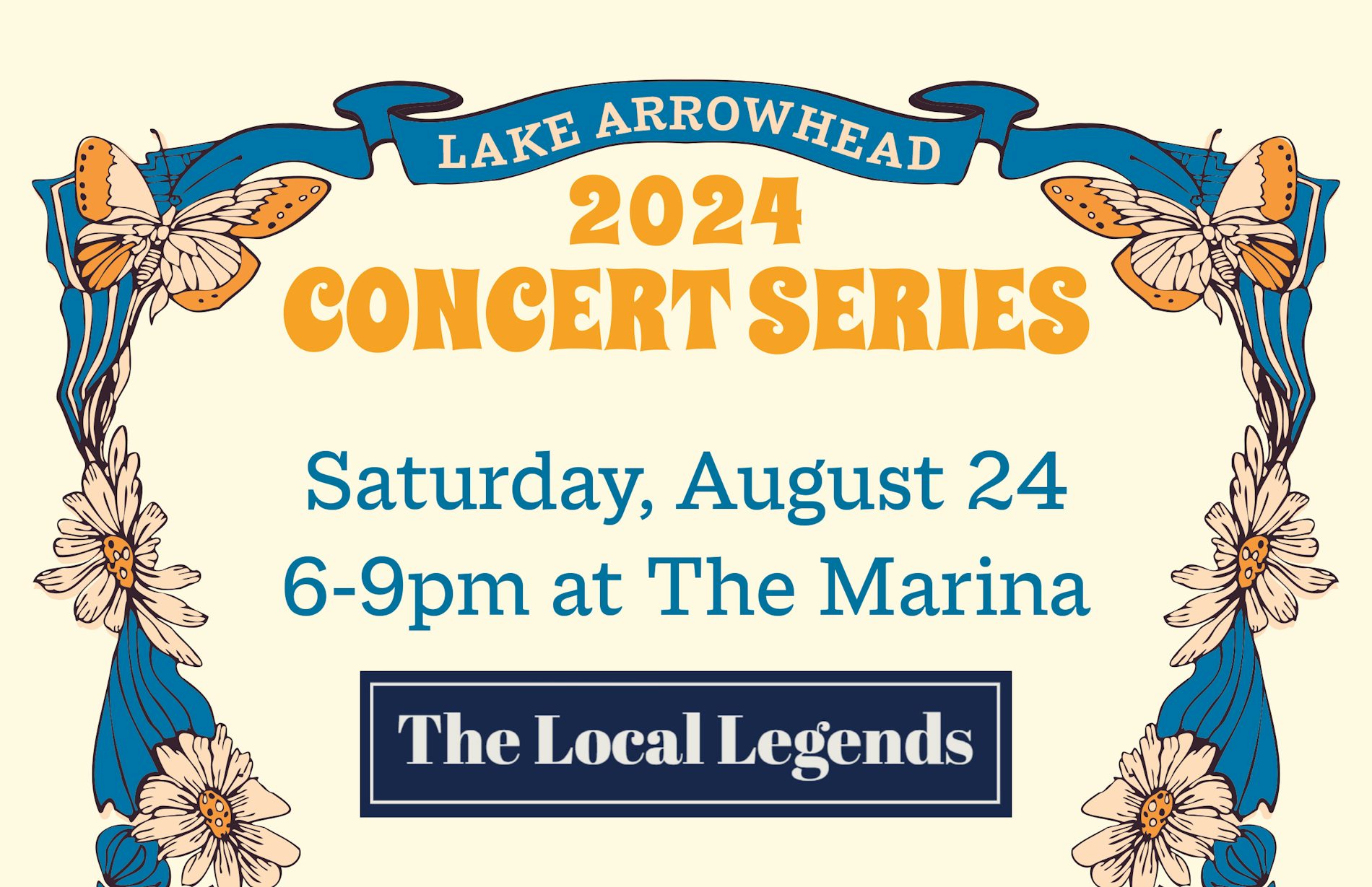 The Lake Arrowhead August 24th concert at the Marina will feature the very popular muscial group, The Local Legends. You can indulge in the offerings from The Cheezy Truck Co. and then cool off with a sweet treat from The Pitt Stop Ice Cream Truck. And don't forget to get your concert series T-Shirt. We hope to see you there! |