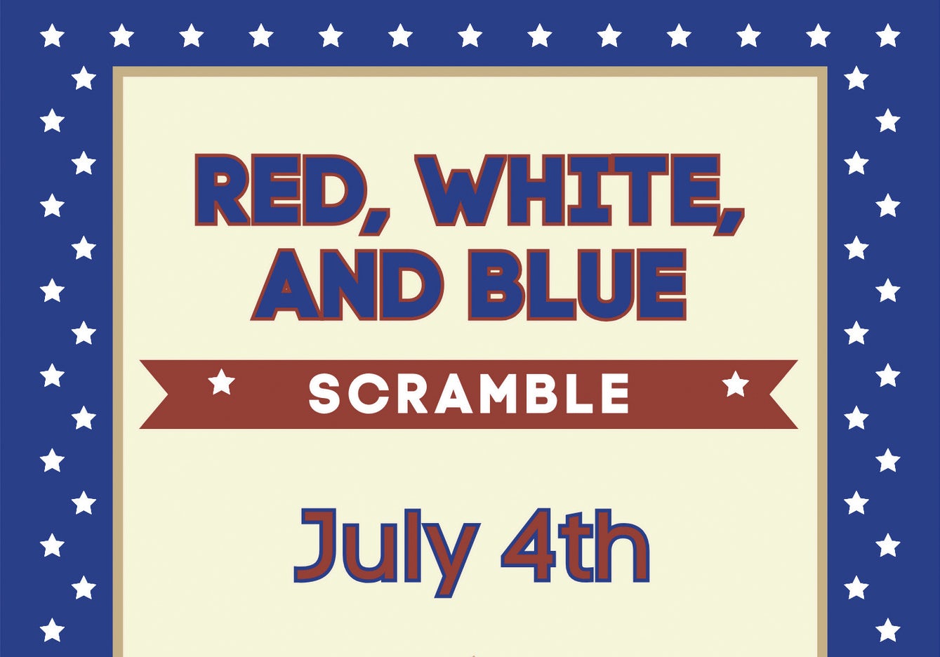 Sign up today for the July 4th Red, White, and Blue Scramble. 4 Person Scramble | Flighted After Play