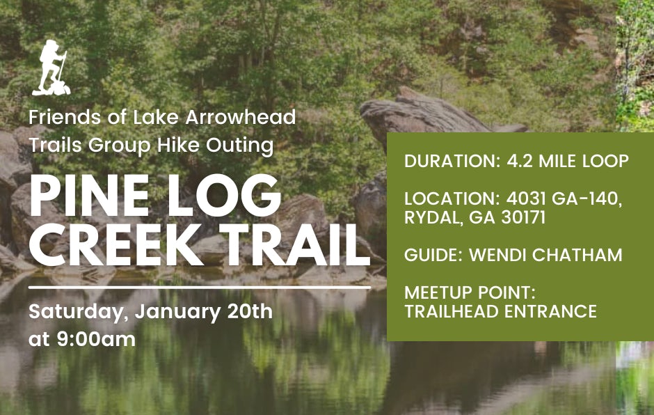 Friends of Lake Arrowhead Trails Group Hike OutingSaturday, January 20th | 9am Join us for a guided hike with Wendi Chatham on the Pine Log Creek Trail (4.2 mile loop). Meetup at the trailhead entrance. RSVP: nobononna@gmail.com |