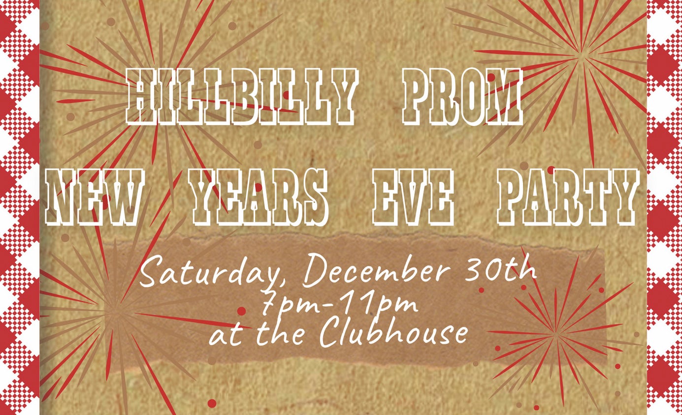 Hillbilly Prom New Year's Eve PartySaturday, December 30th | 7-11pm Fancy dress of cowboy tux and dazzling prom dresses. Enjoy live music, a mouth-watering buffet, and drinks to keep you dancing all night long. Don't miss this hoedown! RSVP: 770-721-7900, ext 3 |