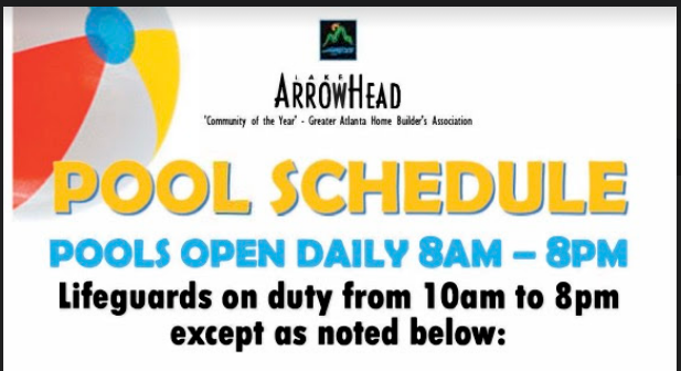 Lake Arrowhead - POOL SCHEDULE