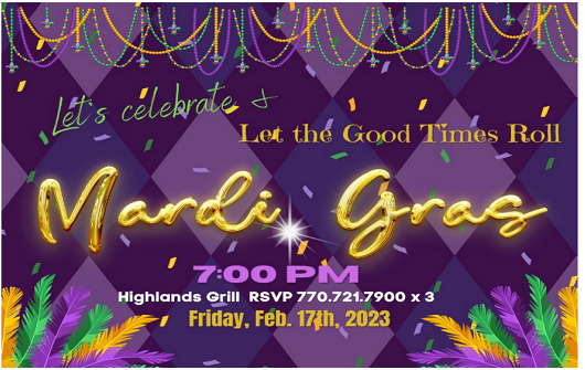 Whether you practice Lent or not come join in this fun celebration of life, love, faith and good fortune as we feast, dance and celebrate the historical tradition of Mardi Gras @ Highlands Grill. Dine on French and Cajun cuisine & drinks. Dance to the beats of DJ Brian while we “Let the Good Times Roll” with friends & neighbors.