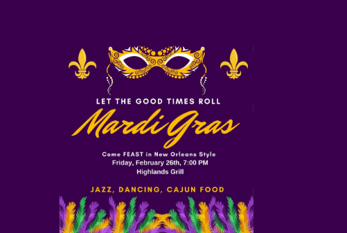 Let the good times roll as we celebrate the rich tradition of Mardi Gras and feast with us on traditional dishes prepared by our amazing culinary team. Don’t forget to don the Trio of colors in honor of what the day stands for: purple for justice, gold for power, and green for faith.