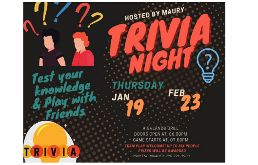 Come test your knowledge with our resident Quiz Master of Trivia Maury Thursday Night at 7:00.