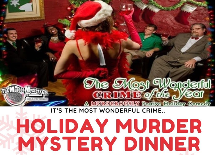 Christmas Murder Mystery Dinner Theater 6:00 PM Silver bells are ringing at this seasonal standup performance, but the jolly jokester gets upstaged by an event far worse than bad holiday comedy: a murder! With humbug hovering over the holiday, it is up to the unamused audience to unravel the mystery of whodunnit like last year’s tacky knitted holiday sweater. While murder is making the night not-so-merry-and-bright, you must gather information, bribe your guests for clues, and solve the crime before this comedy act becomes a tragedy! Menu: Choice of cranberry walnut stuffed pork loin wth onion gravy or grilled salmon with a dill cream sauce. Served with wild rice pilaf and sauteed kale. $50 / PP Don your ugliest Christmas sweater and get in the spirit of it! Prize for the ugliest! Call 770.721.7900 ext. 3 for Reservations. |
